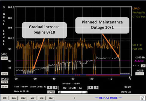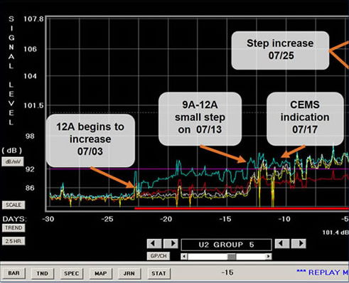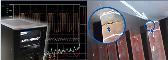 | O AMS-3 fornece dados reais em tempo integral sobre eventuais vazamentos nos tubos. A mesma tecnologia e qualidade de resultados tem sido aplicada para caldeiras de recuperação. Os históricos em recuperadores de vapor indicam que os vazamentos são mais críticos nas soldas dos tubos dos super-aquecedores e reaquecedores, na região de drenagem dos headers e reaquecedores. A informação imediata da ocorrência desses vazamentos fornece subsídios para o reparo em uma parada programada. | ||
